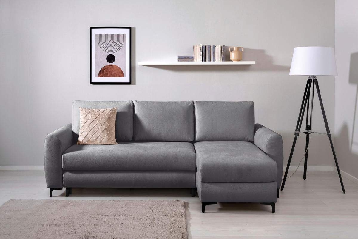 MID.YOU ECKSOFA Moli Dunkelgrau Mikrofaser Rückenkissen, Bettkasten, Schlaffunktion, Rücken echt