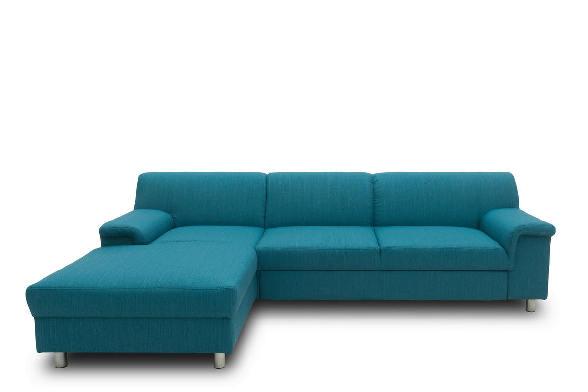 ECKSOFA Petrol Flachgewebe Rückenkissen, Bettkasten, Schlaffunktion, Rücken echt, Armteilverstellung