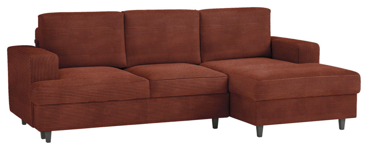 MID.YOU ECKSOFA Rostfarben Cord, Velours Rückenkissen, Bettkasten