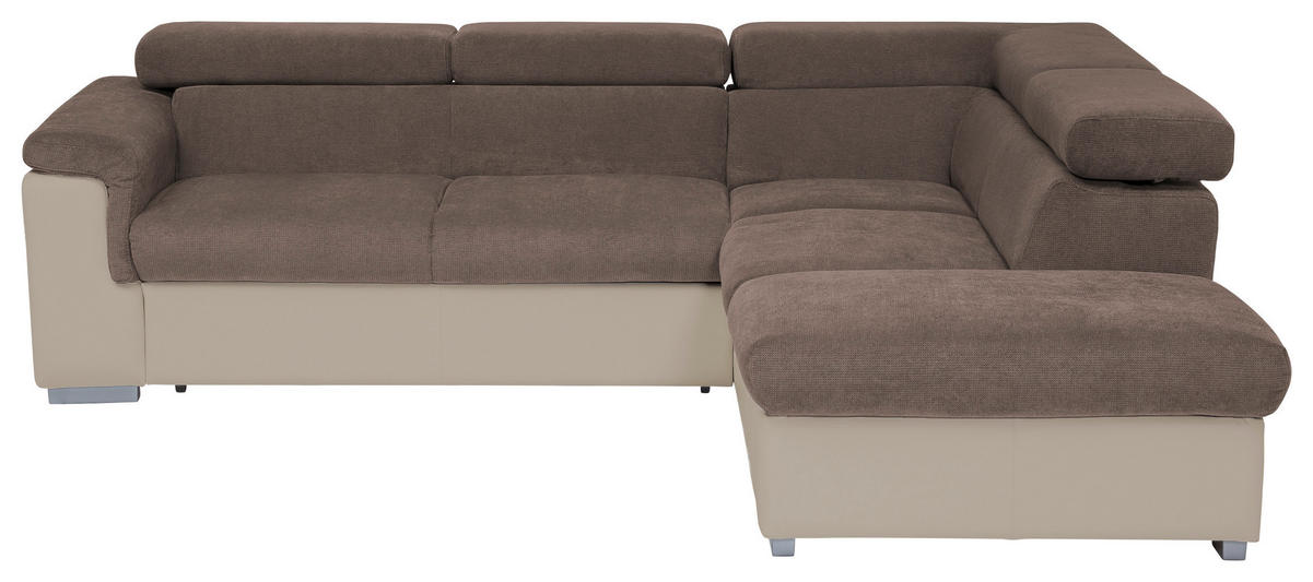 ECKSOFA Taupe Lederlook Bettkasten, Schlaffunktion, Rücken echt, Kopfteilverstellung, Sitztiefenverstellung