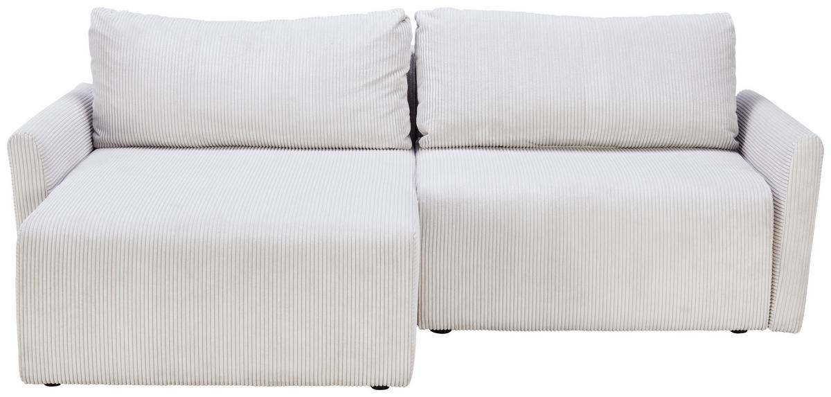 Probier’s mal mit Bequemlichkeit: Ecksofa mit Cord-Bezug in Weiß