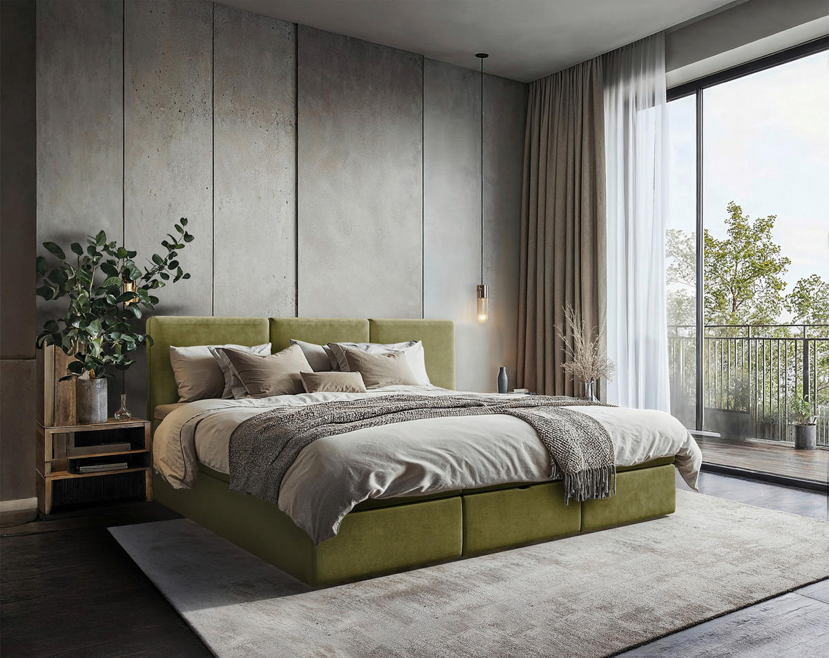 Grün inklusive Bettkasten sorgt für entspannende Nächte.