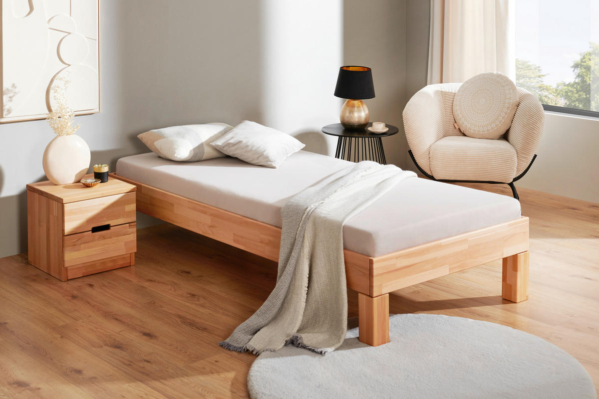Bett (ca. 90 x 200 cm) aus Kernbuche (massiv): natürliche Geradlinigkeit