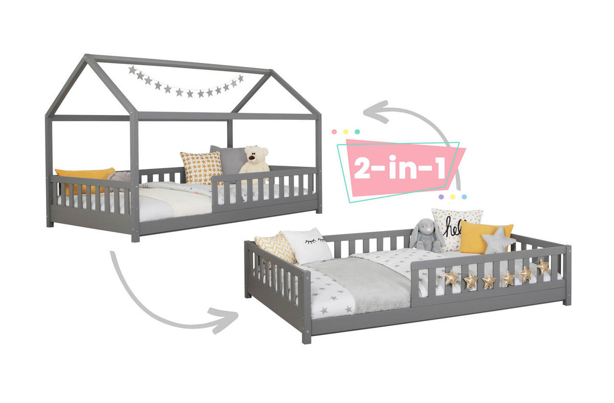 2-in-1 Hausbett ca. 90 x 200 cm (B x L) in Hellgrau: für kleine & große Träumer