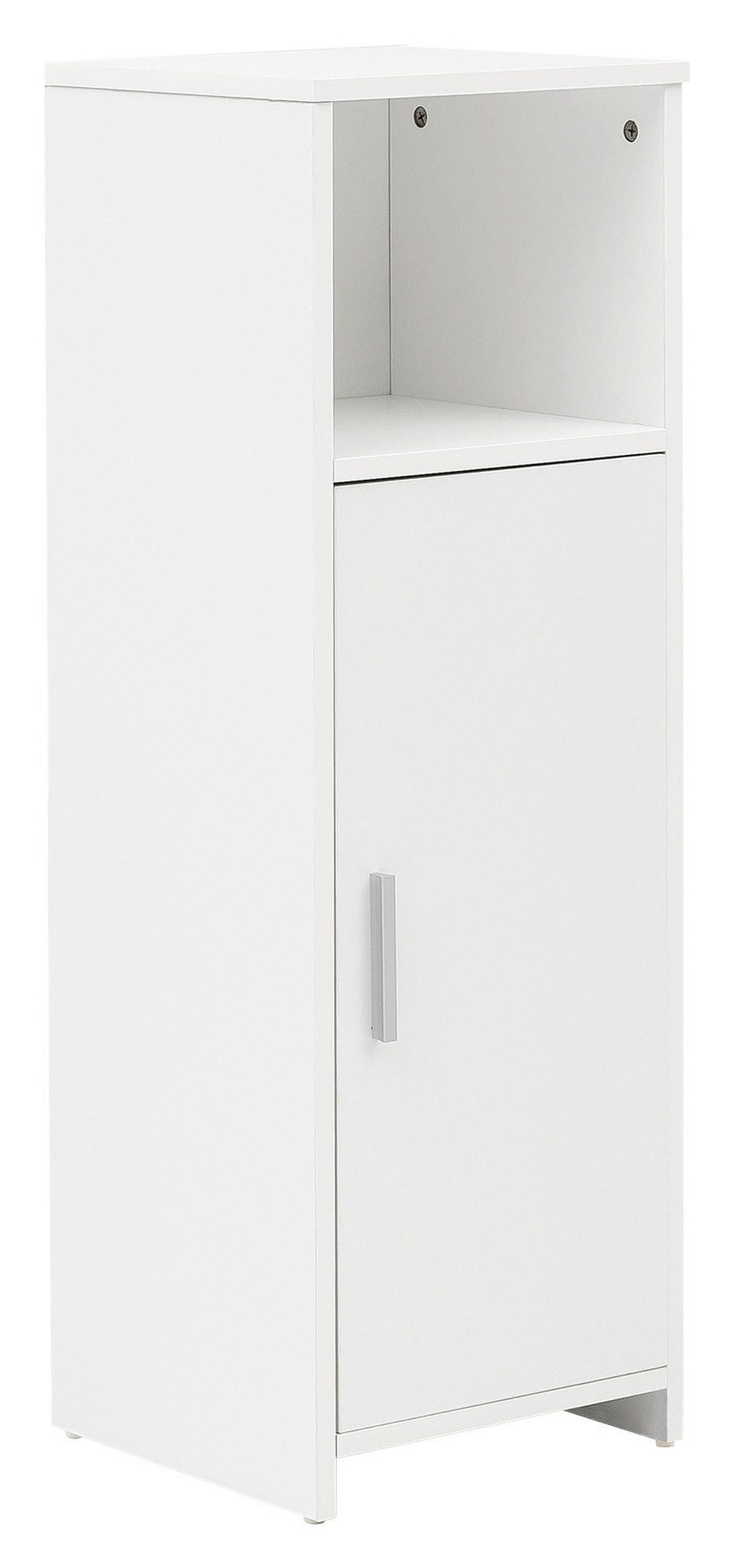 Seitenschrank fürs Bad mit Tür und offenem Fach: geradliniges Raumwunder