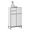 Der Schrank ist bei uns jetzt eine Weile im Einsatz und wir sind ganz zufrieden. Die Aufteilung und Schublade finden wir praktisch. Auf der schwarzen Fläche sind Schmutz und Wasserflecken leider sehr schnell sichtbar.