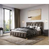 Durch die Fertigung aus Buchenholz, Holzwerkstoff, Metall und mit einem Synthetikfaser-Bezug (100 % Polyester) versehen, bringt das Bett den Wohlfühl-Charakter des Schlafzimmers mit einer gelassenen Farbgebung in Schlammfarben zum Ausdruck. Der weiche