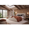 Das Bett in Beige wurde aus Holz, Holzwerkstoff und mit einem Synthetikfaser-Bezug (100 % Polyester) hergestellt – mit seiner modernen Optik bringt es das Wohlfühl-Ambiente im Schlafbereich auf den Punkt. Der