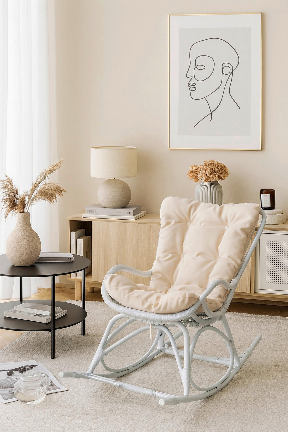 SCHAUKELSTUHL in Weiß  - Creme/Weiß, Natur, Holz/Textil (122/65/96cm) - MID.YOU