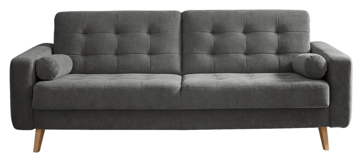 MID.YOU Schlafsofa in Grau mit Velours-Oberfläche: Cleveres 2-in-1-Möbel