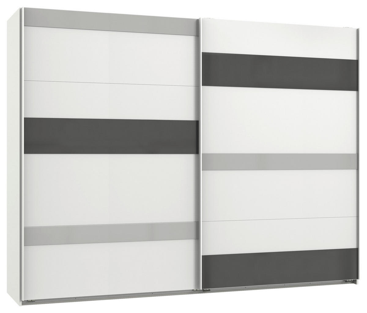 Schwebetürenschrank (ca. 270 cm breit) in Weiß und Grau: topmoderner Stauraum