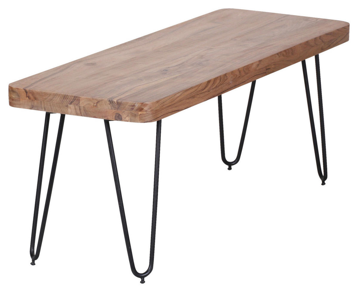 Die solide und gleichermaßen extravagante Basis der Konstruktion sind pulverbeschichtete Haarnadelbeine aus schwarzem Edelstahl, die das Design gekonnt abrunden. Mit dieser Sitzbank (B x T: ca. 120 x 40 cm) aus Massivholz und Metall stellen Sie Ihrem Esstisch eine stilbewusste Begleitung zur Seite!