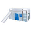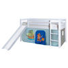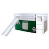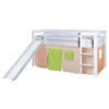 Mit diesem Spielbett inklusive Rutsche und Vorhang hält ein gemütlicher Ort zum Schlafen im Kinderzimmer Einzug - und noch viel mehr. Denn der Bereich unten lädt dank der dekorativen bunten Stoffbahnen zu fantasievollen Abenteuern ein. Ob Zoobesuch oder Safari bleibt mit dem Tier-Design der Vorstellungskraft der Kleinen überlassen.