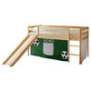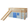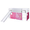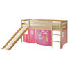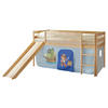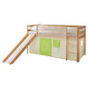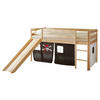 Massives Kiefernholz sorgt für die Standfestigkeit und Robustheit des Möbels. Eine Lackierung schützt die Oberflächen zusätzlich, damit sie lange schön bleiben. Der natürliche Holzfarbton wirkt behaglich und harmoniert optimal mit dem Look der Textilien. Dieses Spielbett mit Rutsche und Vorhang macht Kinderträume wahr!