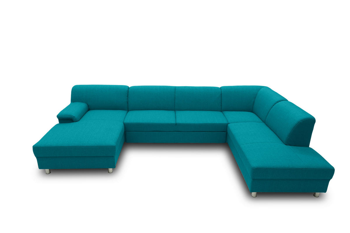 Unwiderstehlich: Wohnlandschaft mit Webstoff-Bezug in Petrolfarben