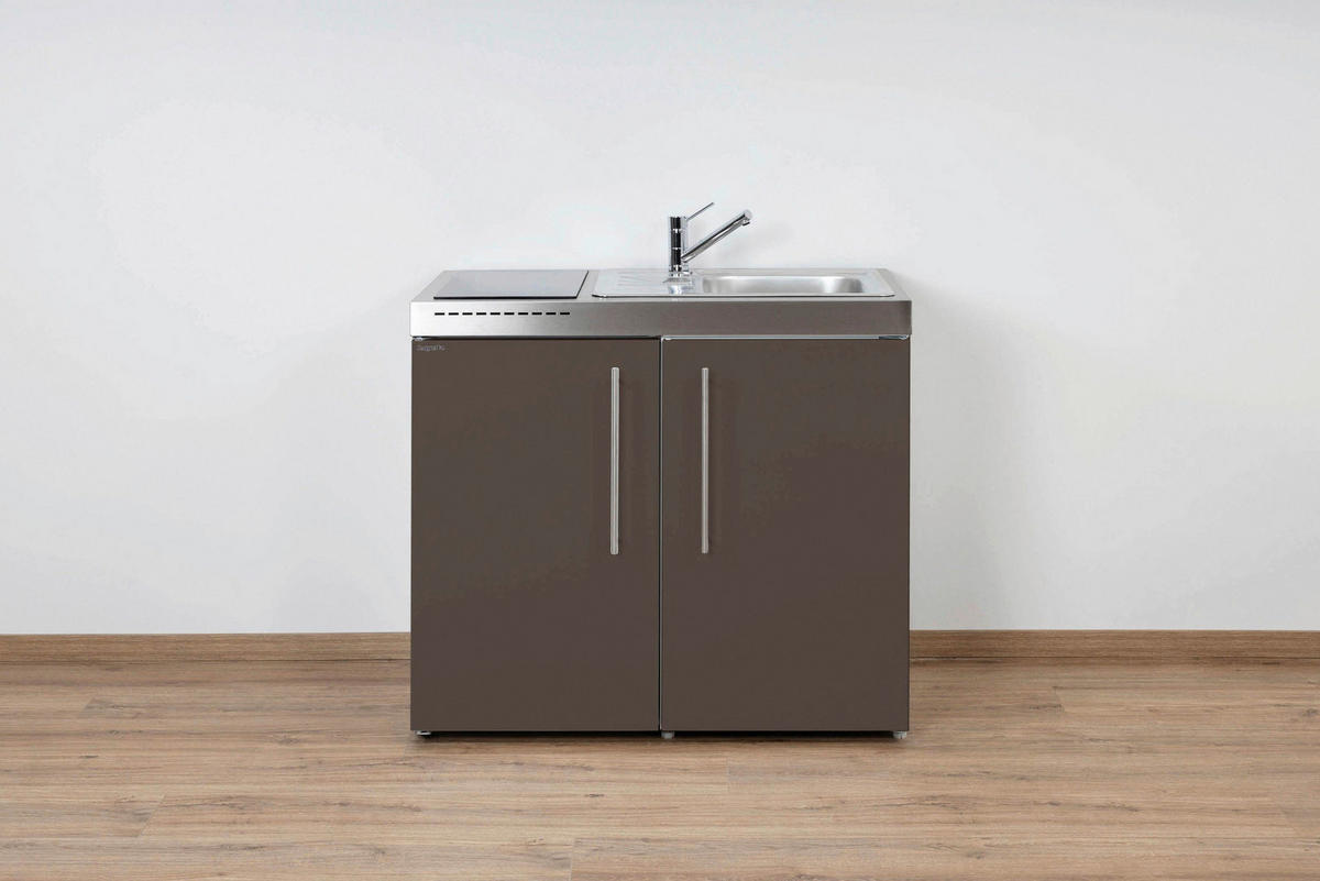 MINIKÜCHE  100/89/60 cm  in Mokka  - Edelstahlfarben/Mokka, Basics, Metall (100/89/60cm)
