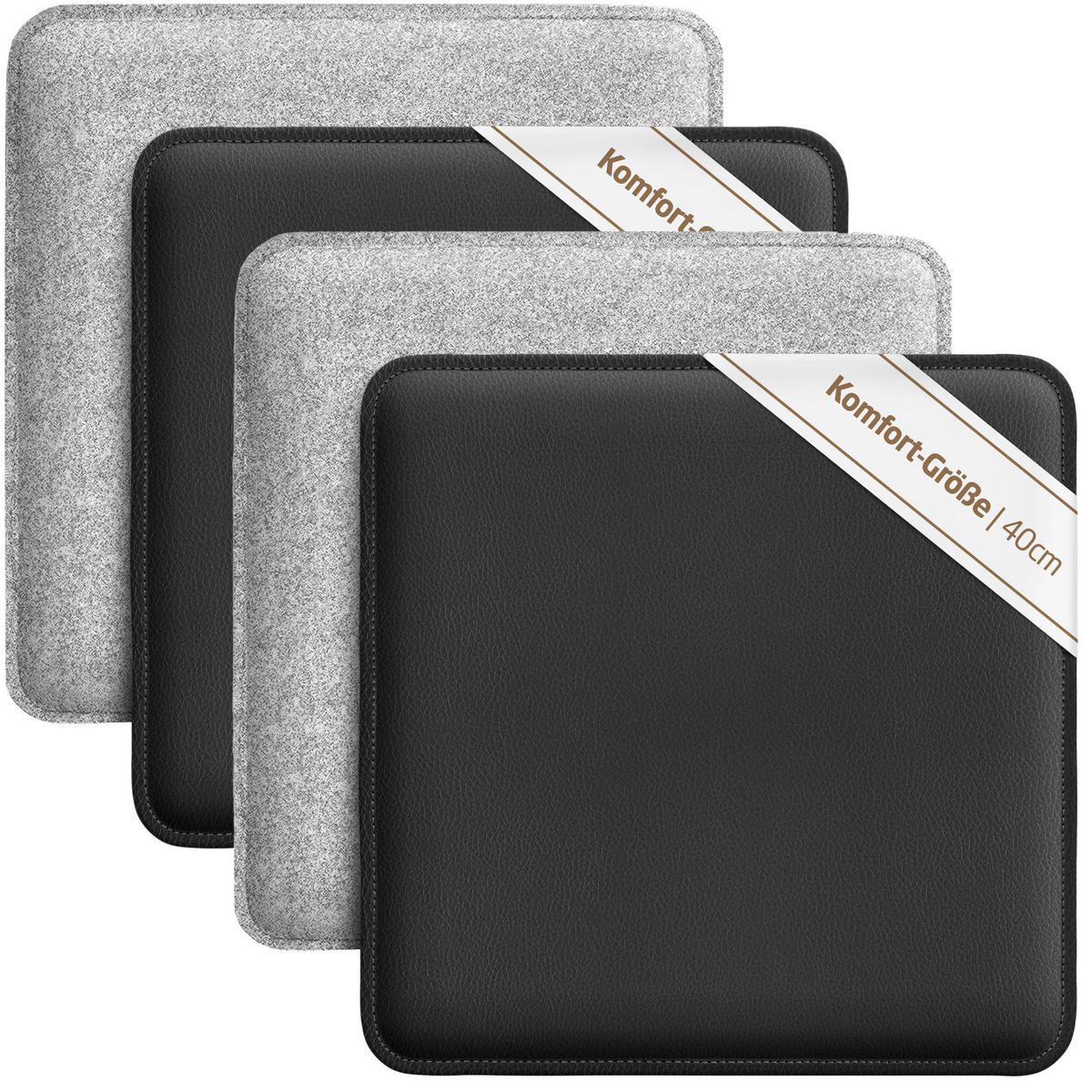SITZKISSEN zum Wenden Filz und Kunstleder 4er Set - Hellgrau, Textil (40/40/2cm) - Miqio Design