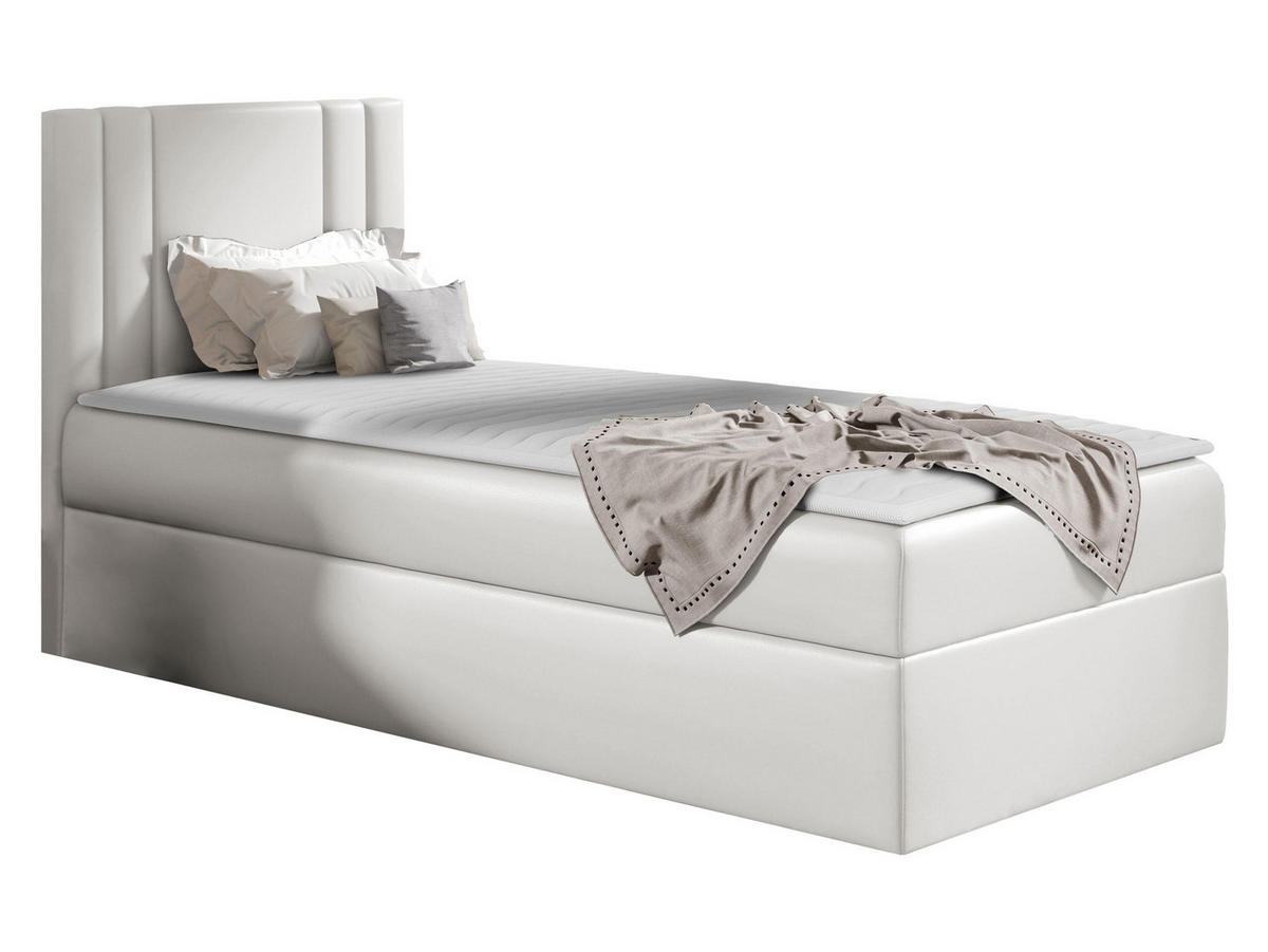 - Bett im Standard mit Bettkasten für die Bettwäsche. Durch Federn wird das Aufklappen erleichtert,