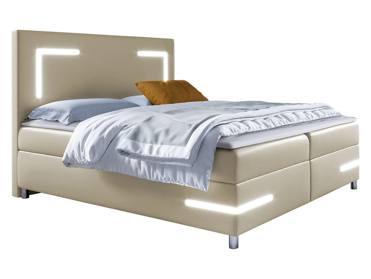 - Bett im Standard mit zwei Bettkästen für die Bettwäsche auf beiden Seiten des Bettes. Durch Federn wird das Aufklappen erleichtert,