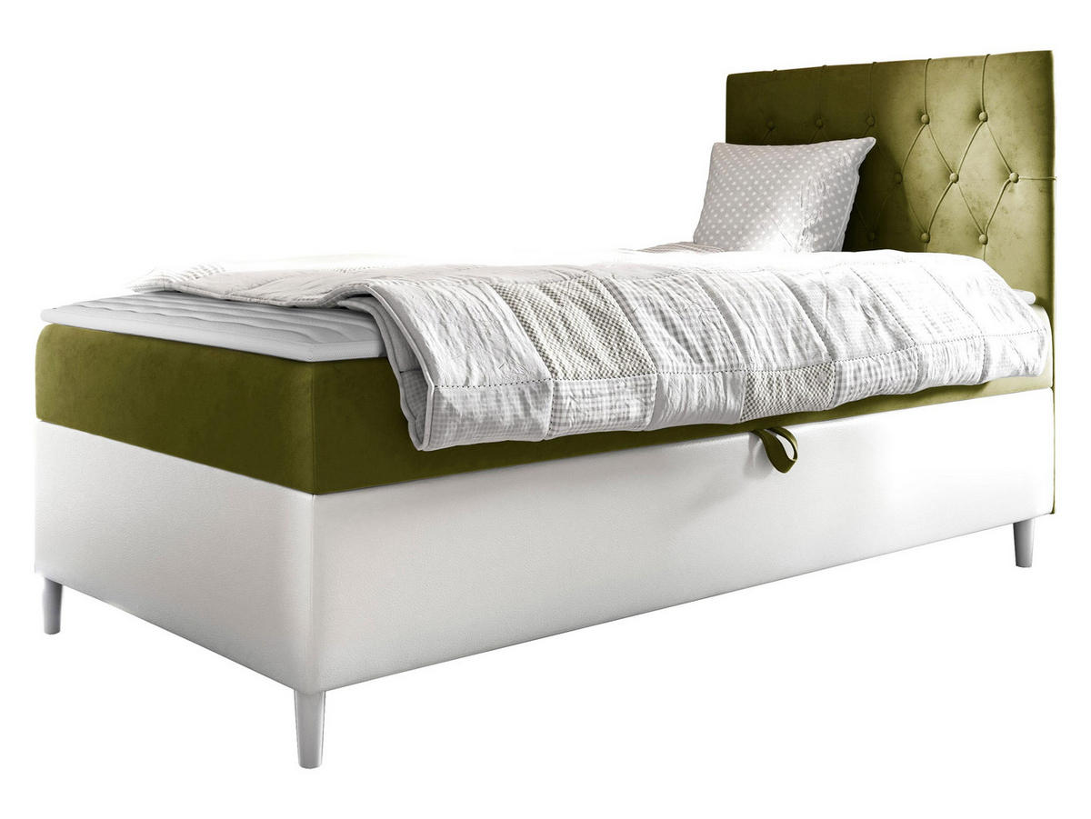 BOXBETT Filip Junior 1, Seite zum Öffnen des Bettkastens: Rechts - H3 - Weiß/Grün, Holz (80/200cm) - MIRJAN24