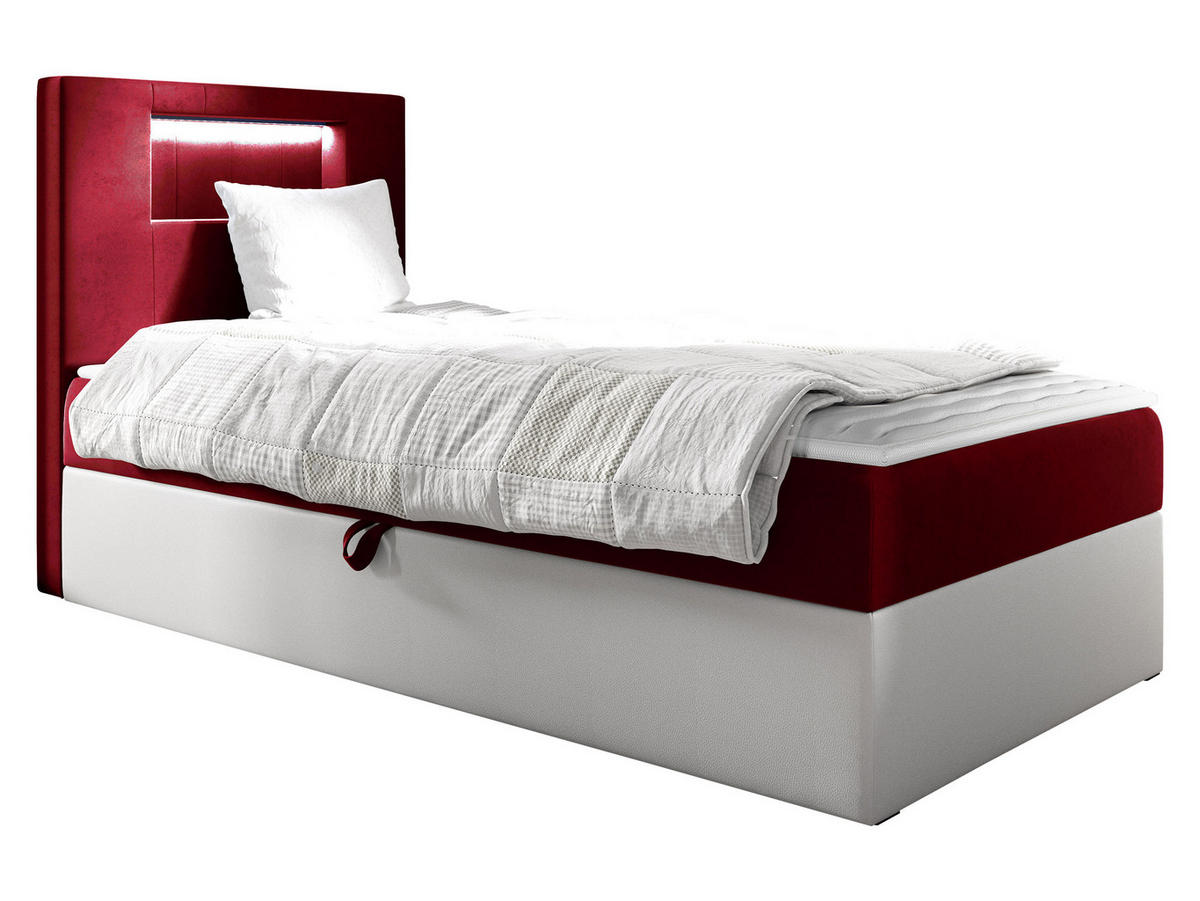 - Besonderheiten: mit Bettkasten, Polsterkopfteil und Beleuchtung