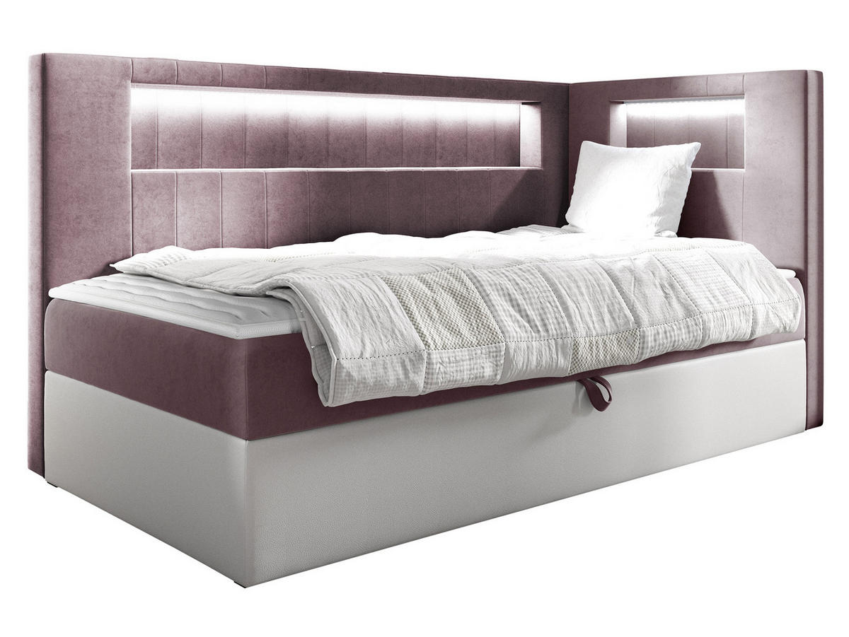 BOXBETT Gold Junior 3, Seite zum Öffnen des Bettkastens: Rechts - H3 - Weiß/Rosa, Holz (100/200cm) - MIRJAN24MIRJAN24