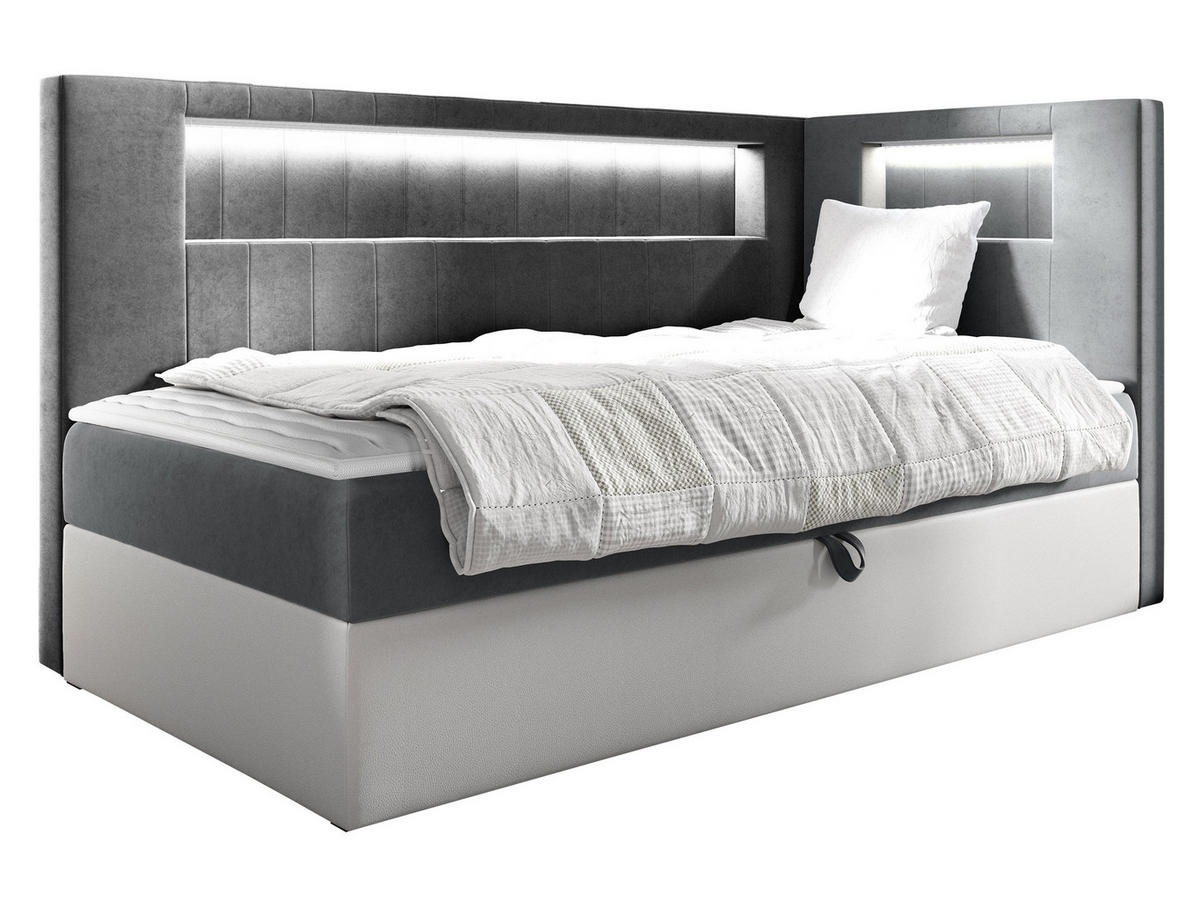 - Besonderheiten: mit Bettkasten, Polsterkopfteil und Beleuchtung