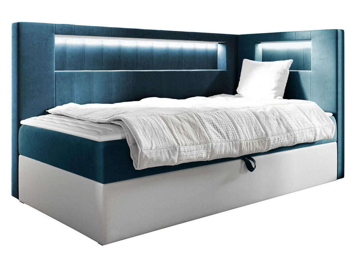 BOXBETT Gold Junior 3, Seite zum Öffnen des Bettkastens: Rechts - H3 - Türkis/Weiß, Holz (90/200cm) - MIRJAN24