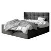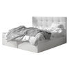 - Bett im Standard mit zwei Bettkästen für die Bettwäsche auf beiden Seiten des Bettes. Durch Federn wird das Aufklappen erleichtert,