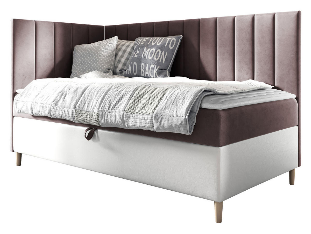 BOXBETT Maja Junior 3, Seite zum Öffnen des Bettkastens: Links - H3 - Weiß/Rosa, Holz (100/200cm) - MIRJAN24MIRJAN24