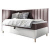 - Bett im Standard mit Bettkasten für die Bettwäsche. Durch Federn wird das Aufklappen erleichtert,