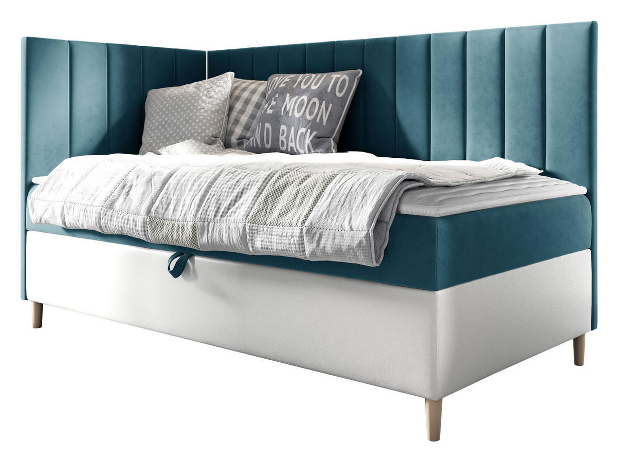 BOXBETT Maja Junior 3, Seite zum Öffnen des Bettkastens: Links - H3 - Türkis/Weiß, Holz (90/200cm) - MIRJAN24MIRJAN24