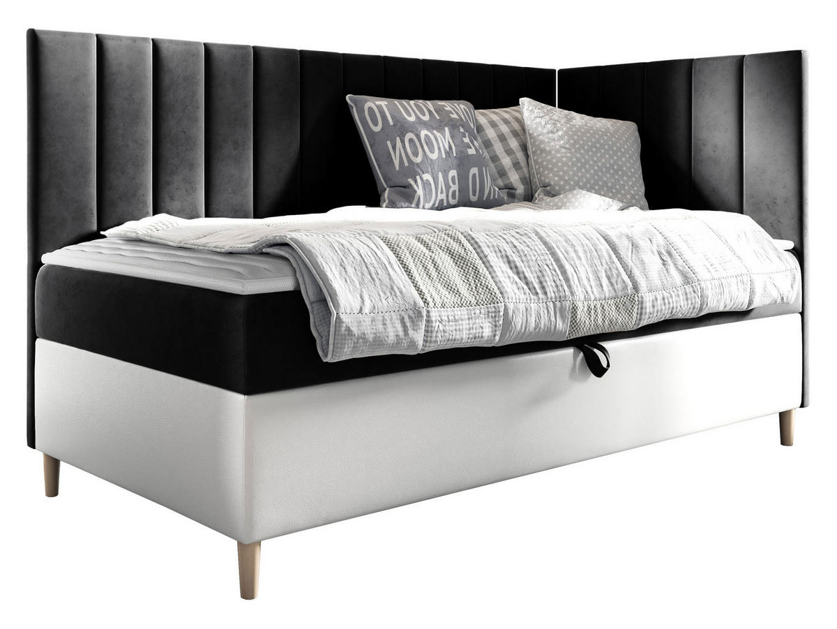 BOXBETT Maja Junior 3, Seite zum Öffnen des Bettkastens: Rechts - H3 - Schwarz/Weiß, Holz (100/200cm) - MIRJAN24MIRJAN24