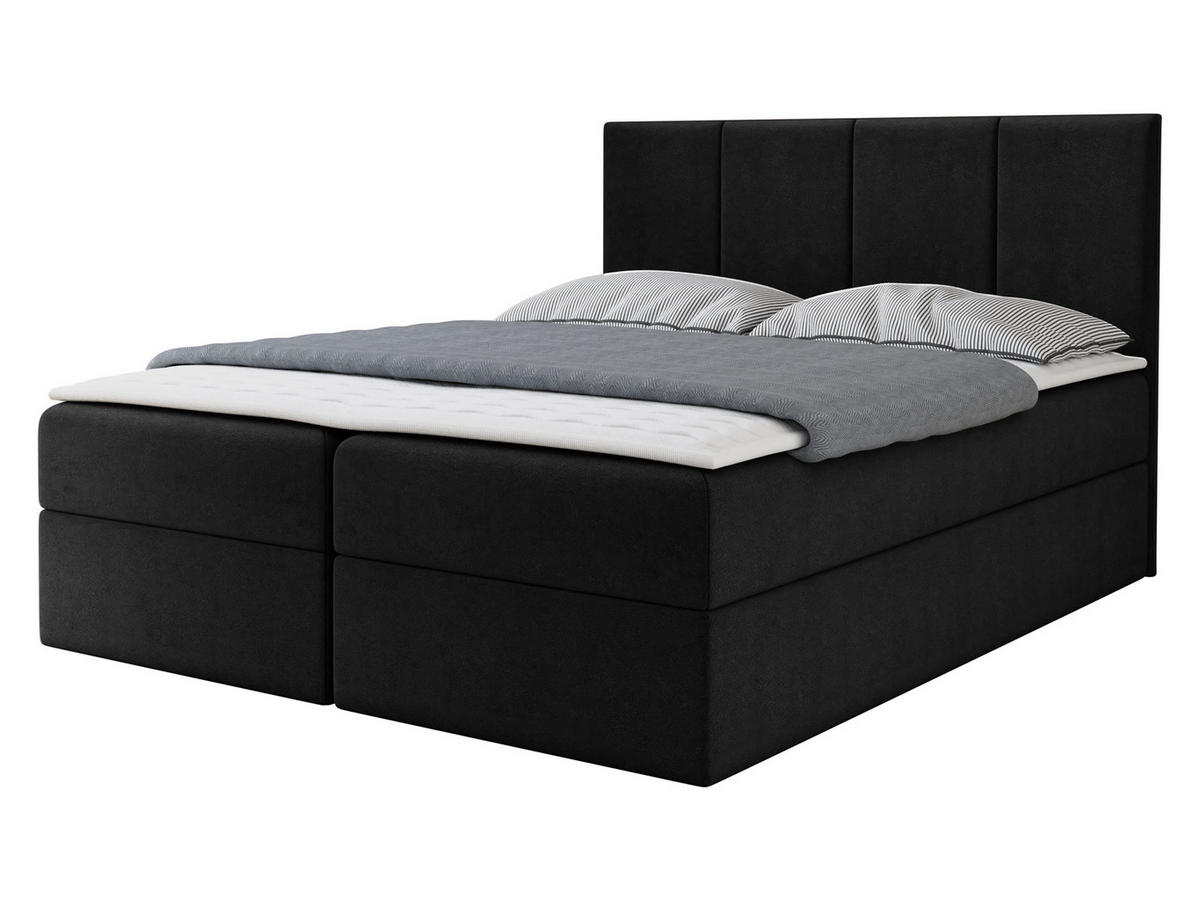 - Bett im Standard mit zwei Bettkästen für die Bettwäsche auf beiden Seiten des Bettes. Durch Federn wird das Aufklappen erleichtert,