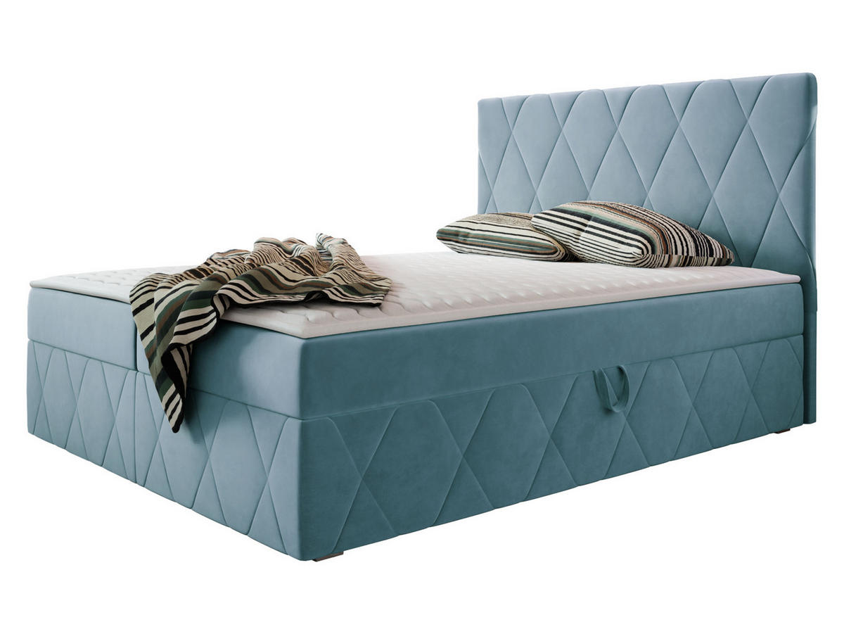 - Bett im Standard mit zwei Bettkästen für die Bettwäsche auf beiden Seiten des Bettes. Durch Federn wird das Aufklappen erleichtert,