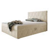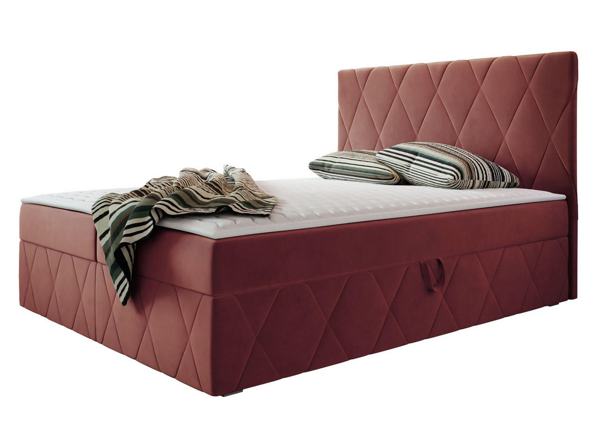 - Bett im Standard mit zwei Bettkästen für die Bettwäsche auf beiden Seiten des Bettes. Durch Federn wird das Aufklappen erleichtert,