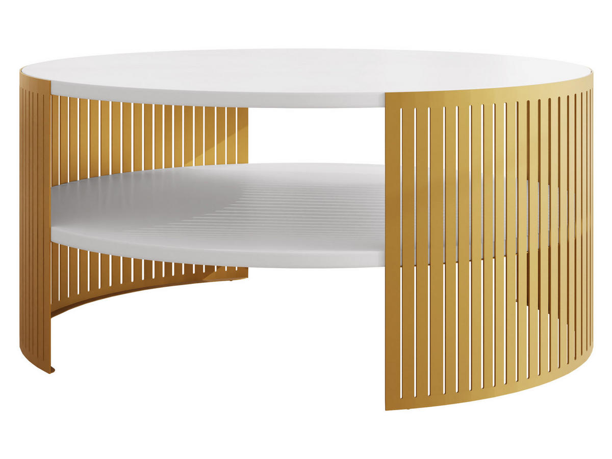 - Beine und Seiten aus Stahl, gold pulverbeschichtet.