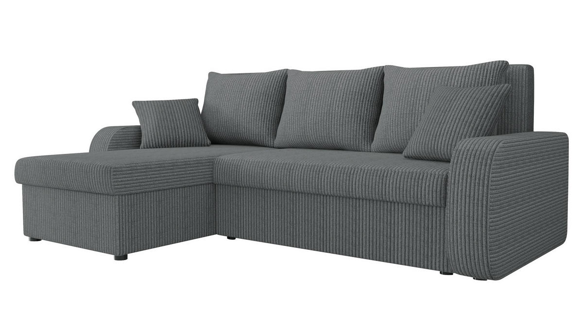 ECKSOFA Grau Flachgewebe Rückenkissen, Schlaffunktion, Rücken echt, Armteilverstellung, Stauraum