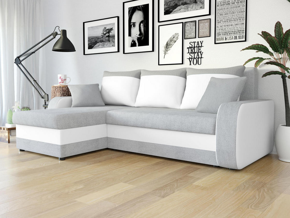 ECKSOFA Kris Lux - Silberfarben/Schwarz, Holz/Kunststoff (238/147cm) - MIRJAN24MIRJAN24