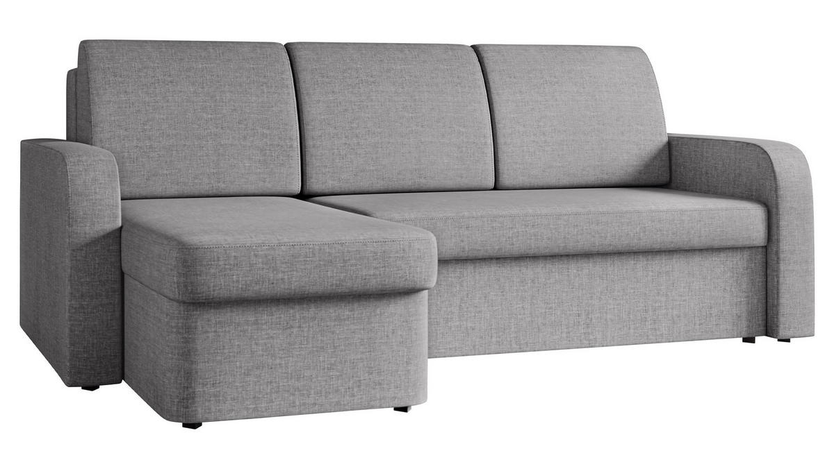 ECKSOFA Grau Flachgewebe Rückenkissen, Schlaffunktion, Rücken echt, Armteilverstellung, Stauraum