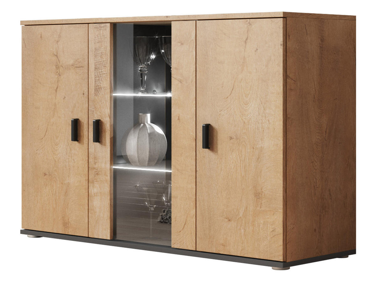 KOMMODE Soho S07 - Eichefarben/Schwarz, Holzwerkstoff/Kunststoff (120/80/41cm) - MIRJAN24