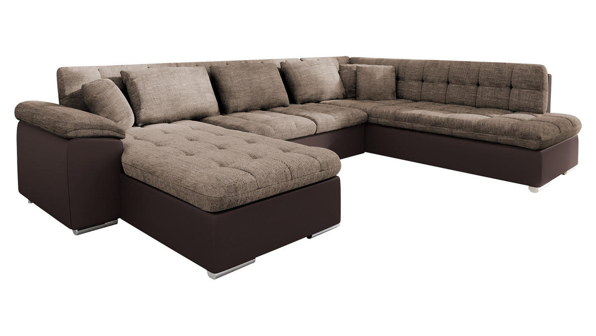 WOHNLANDSCHAFT Niko Bis, Seite: Links - Hellbraun, Holz/Textil (348/76/205cm) - MIRJAN24MIRJAN24