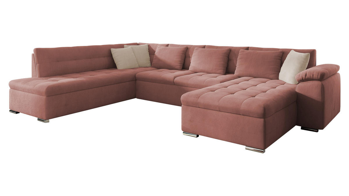 WOHNLANDSCHAFT Niko Bis, Seite: Rechts - Rosa, Holz/Textil (348/76/205cm) - MIRJAN24MIRJAN24