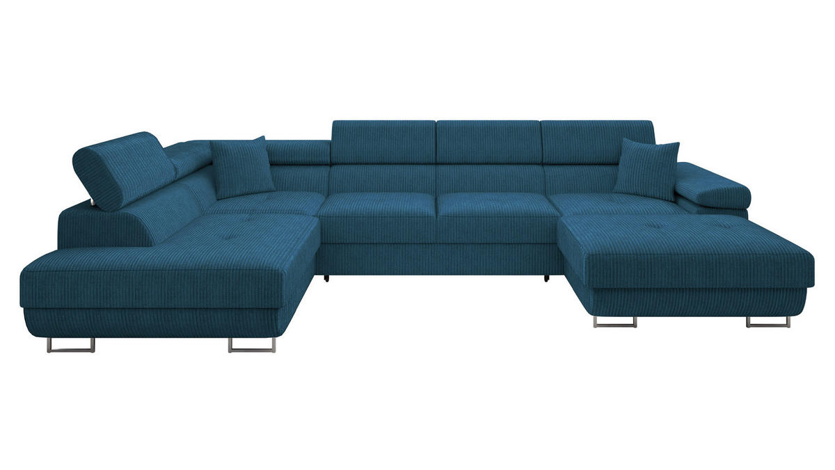 WOHNLANDSCHAFT Torezio Bis Cord, Seite: Links - Blau, Holz/Textil (346/90/203cm) - MIRJAN24MIRJAN24