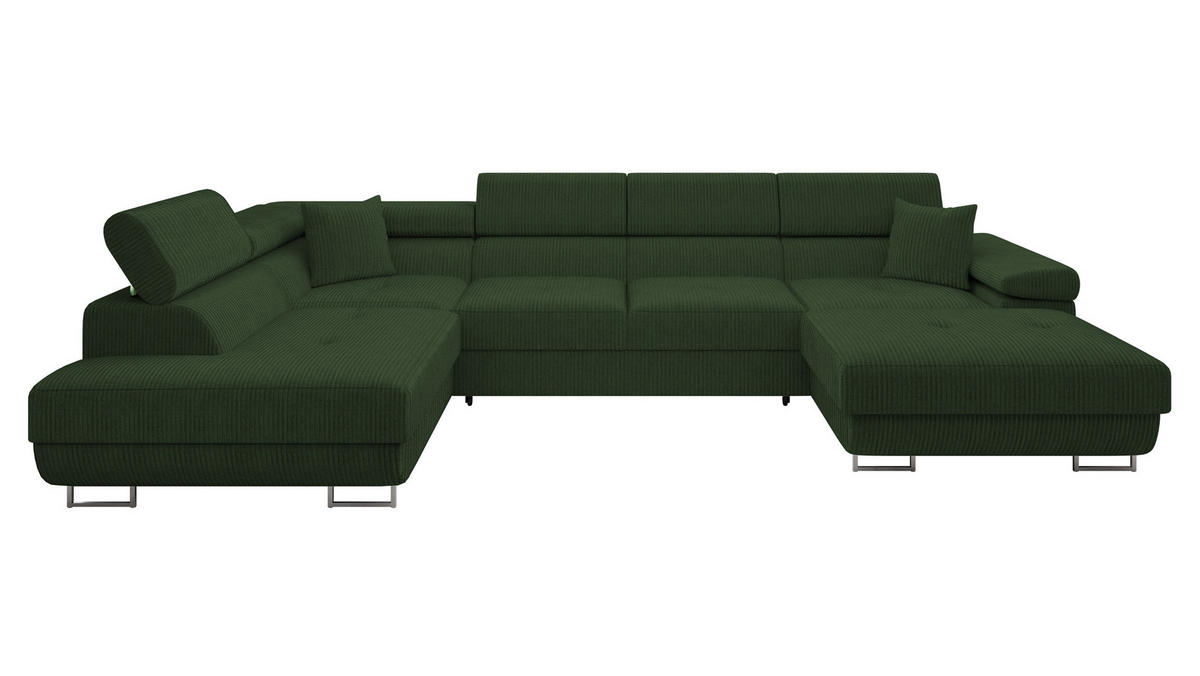 WOHNLANDSCHAFT Torezio Bis Cord, Seite: Links - Grün, Holz/Textil (346/90/203cm) - MIRJAN24MIRJAN24