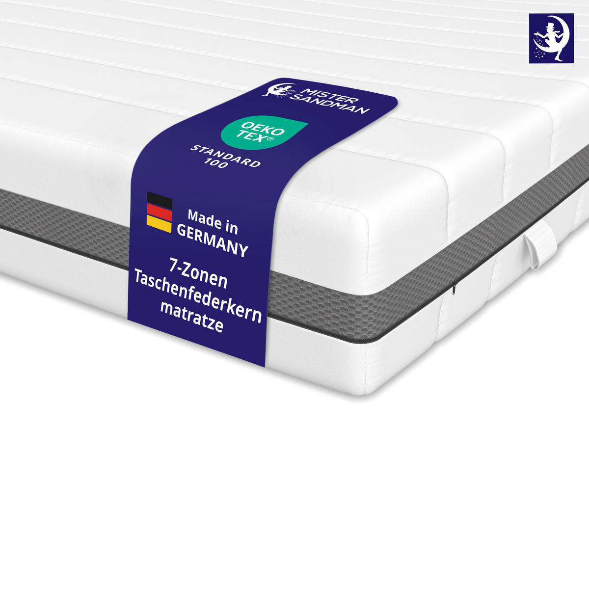 Mister Sandman MATRATZE H3 180x200 cm – 24 cm Komforthöhe – 7 Zonen Matratze mit Taschenfederkern, stabile Matratze mit Klimaband & waschbarem Bezug