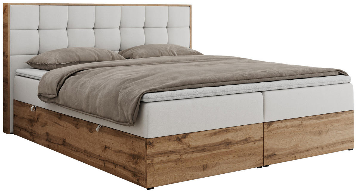 - Besonderheiten: Zwei Bettkästen, Topper 5 cm, Gepolstertes Kopfteil
