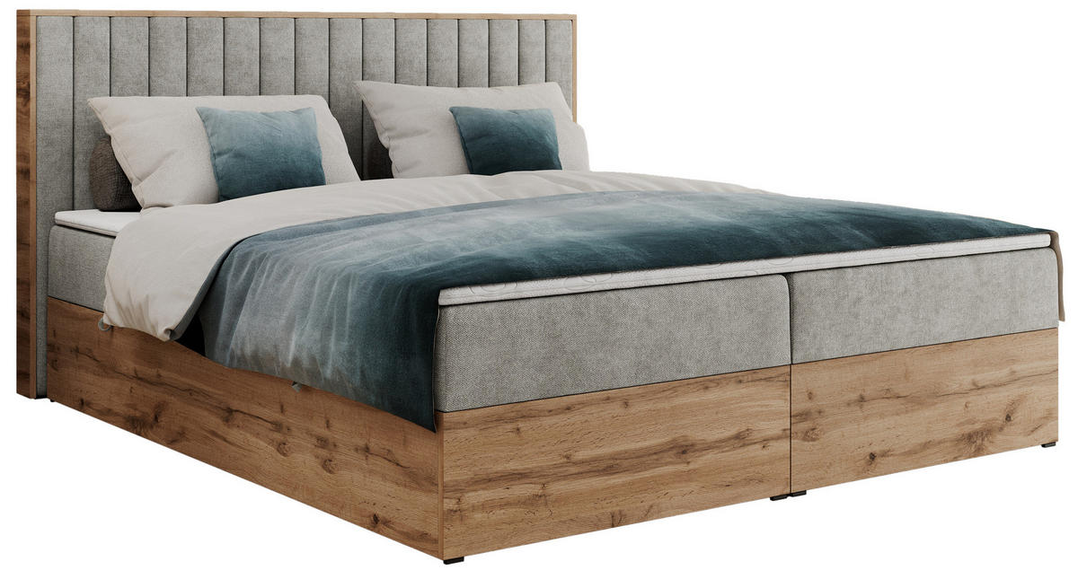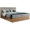 - Besonderheiten: Zwei Bettkästen, Topper 5 cm, Gepolstertes Kopfteil