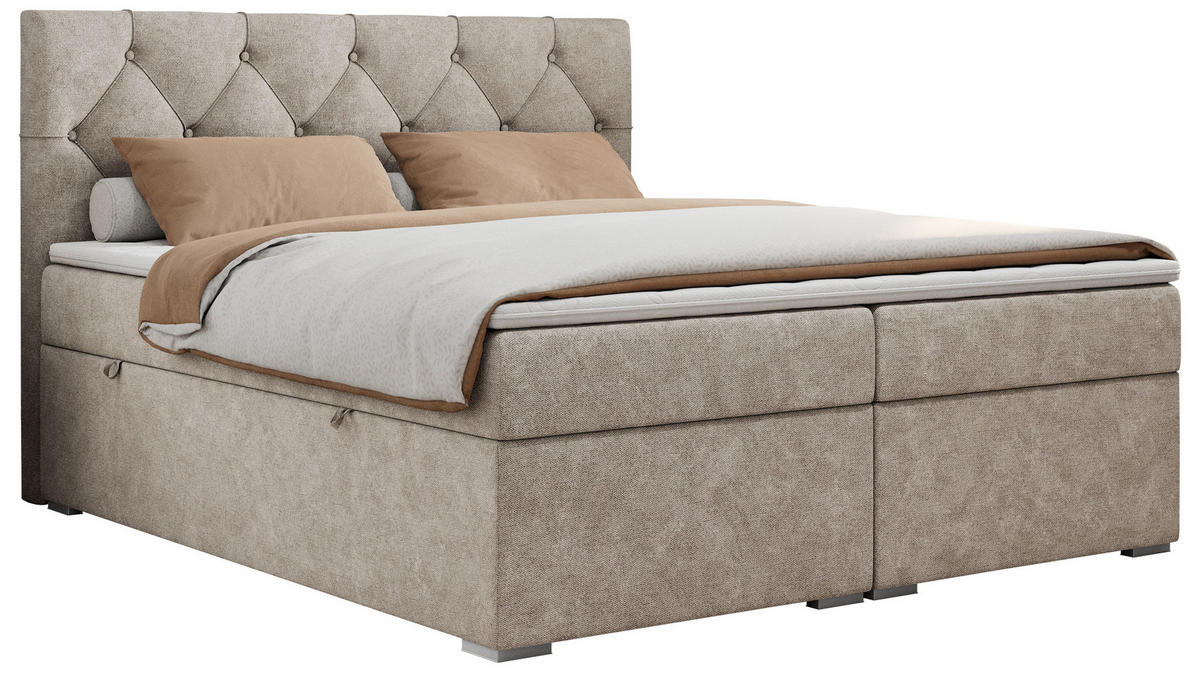 BOXBETT 160/200 cm, in Beige, gepolstertes Kopfteil, Bettkasten, Topper, Matratzen, H3 + H3 = fest