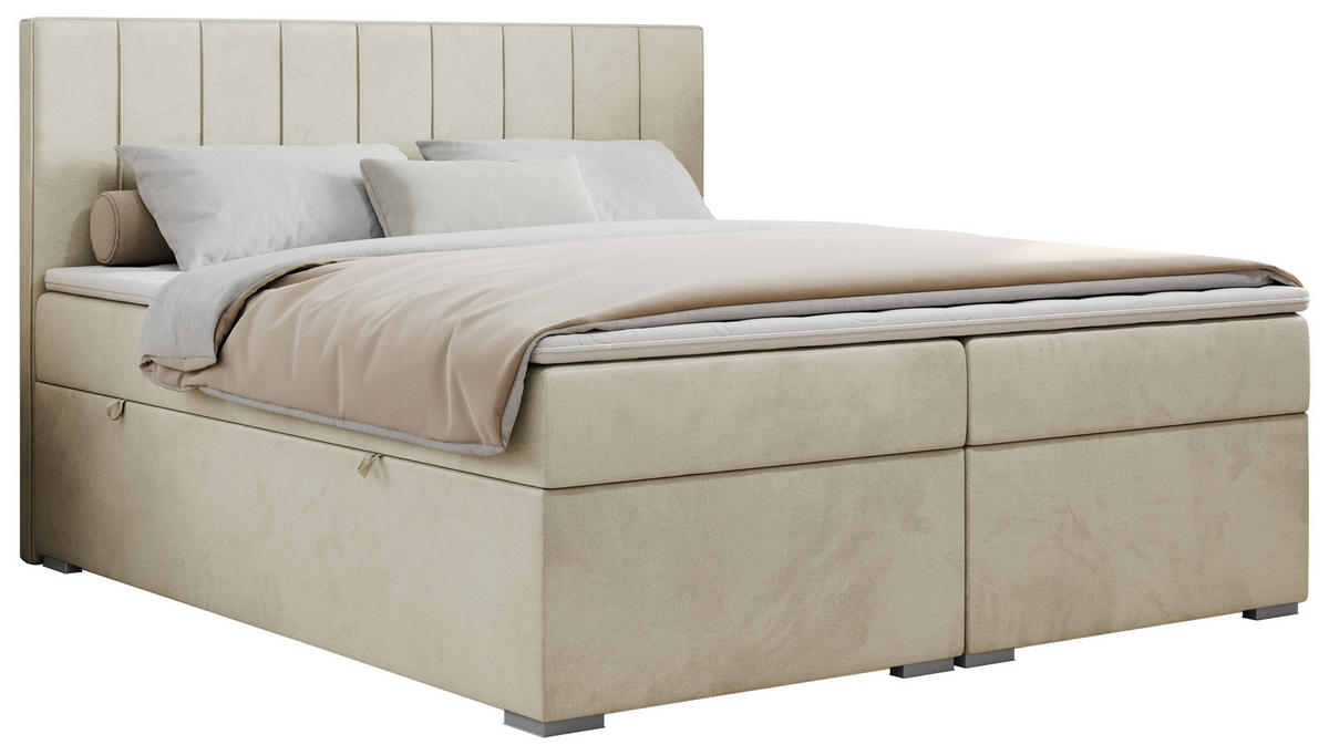 BOXBETT 160/200 cm, in Beige, Matratzen, Topper, Bettkasten, gepolstertes Kopfteil, H3 + H3 = fest
